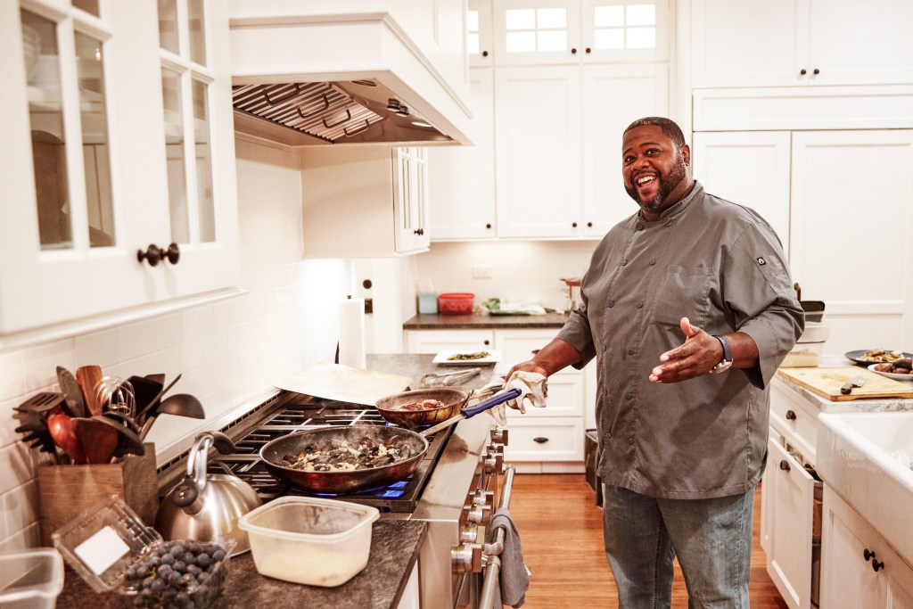 Thanksgiving. Let’s talk about the big food holiday! Terrell will handle it all for you. Turkey from Casey’s, of course, is on the menu. Along with the bird, you might enjoy zucchini and squash medallions, mashed sweet potatoes (That we swear taste like ice cream—no added sugar!), cauliflower mash, or apple cider Brussels sprouts with bacon. Pumpkin pie, apple crumb, banana crème, or cheesecake (his specialty) could finish off the meal.