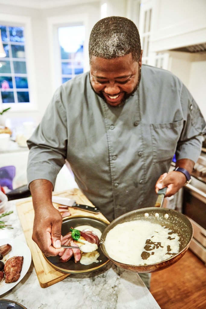 We were mid-interview when we noticed an exuberant couple approach us calling his name. Joyce and Dominic Imburgia walked right up to Terrell, shook his hand, and talked with us for 30 minutes about Terrell’s cooking! We were delighted to hear their firsthand account; their feedback highlighted things Terrell was far too humble to mention. The Imburgia’s were referred to Terrell by another satisfied client when planning Dom’s 80th birthday party at their house.