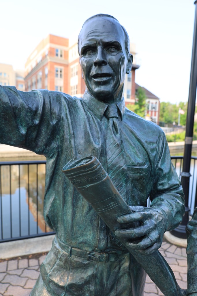 The pair represents Jim Moser (Harold’s brother) and Mayor Chester “Chet” Rybicki as they worked on their plan to honor the 150th anniversary of the founding of Naperville in 1981. The Riverwalk is now considered one of Naperville’s finest “crown jewels” and is visited by people from all over the world.