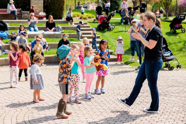 Amanda also recalled another favorite moment when three dogs became as immersed as their owners in the songs and dancing and started prancing around with the children. She delights in being able to share the library’s resources with everyone outside in the fresh air and sunshine. The surprised pleasure that community members experience upon finding free entertainment is an element that Amanda genuinely enjoys about outdoor storytimes.