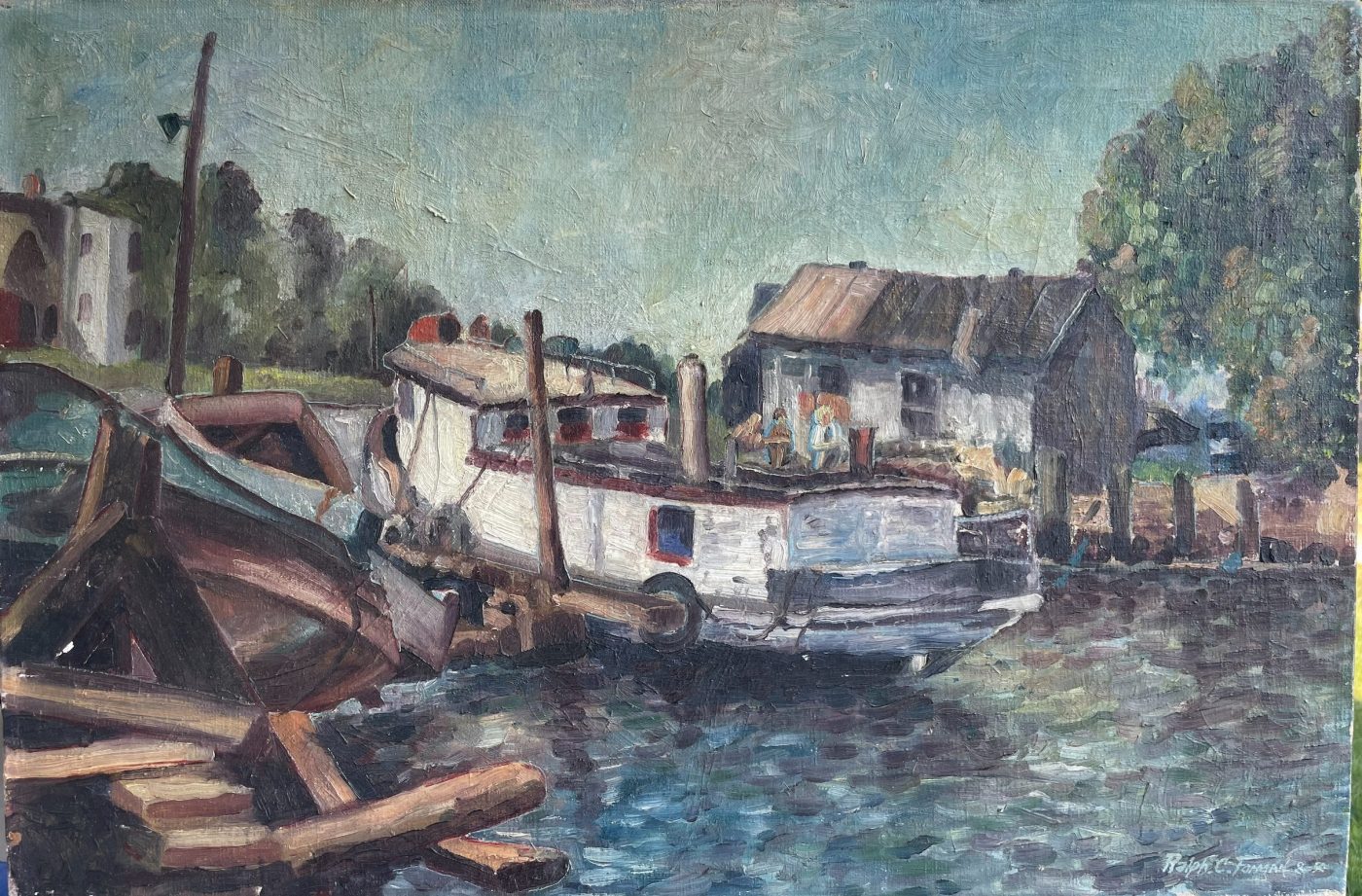 In mid-August, I found one of my grandfather’s paintings on Ebay. Yes, Ebay. This would be a neat find for anyone, but mine was especially cool because I have been Googling Pawpaw’s art periodically for the better part of 15 years. This time, the search hit paydirt! Ralph Clifford Forman was born in 1924. As a young man, he enlisted in the Army and served in WWII. His job during the war was as a mail carrier. As he tells it, he spent his time delivering mail while reflecting on the scenery around him. I can imagine that the scenes of war caused him to mentally escape into anything beautiful where he could find it. He was lucky to come home after the war and held onto his memories. Within a few years of his return, Ralph attended The School of the Art Institute of Chicago. He painted his memories off and on for decades.