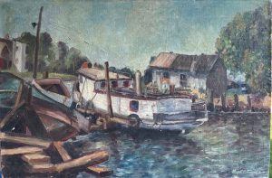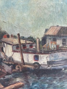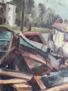 My parents put away the saved paintings into the basement where they remained largely forgotten. In the meantime, my mother’s brother became a prolific muralist: Paul Barker, of Googleplex Murals, whose work is in Cantigny and the Museum of Science and Industry, as well as Brookfield and Lincoln Park Zoos. As Paul added projects, my mother shared the family lore that my grandmother, Paul’s and her mom, was the first cousin of Edgar Degas, the famous French Impressionist. Surely, my family was magical in the art space, and something stuck in the back of my mind. When I shared my recent discovery with my parents, my dad indicated that he had never seen the one I bought. Dad speculated that it was likely sold sometime in the 60s when the family was on extremely hard times. During that conversation, my folks also reminded me that they had a flood in the early 2000s that wiped out all the rest of Pawpaw’s paintings. So, here I found a painting made in 1950, from memory of a war in 1944-ish, that was sold in perhaps the 1960s, and SOMEHOW, I Googled it before someone else purchased—72 years after its creation!