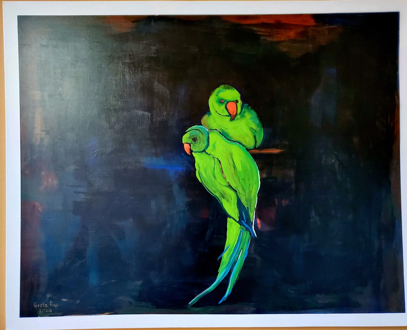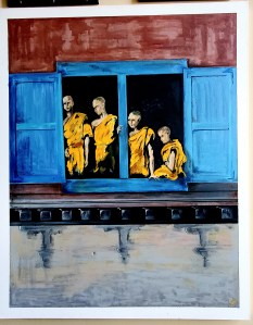 I am originally from Mangalore, India. I moved here 22 years ago. I’ve been making art for over 40 years and mostly use oil paints as the primary medium. Recently, I’ve started using acrylic and water colors. My figurative abstract style art is inspired by people and sights seen during my travel and also from childhood memories.
